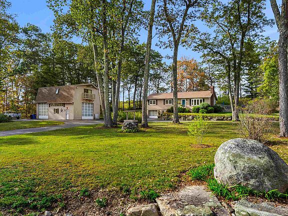 Enjoy an unbeatable location with effortless access to shopping, dining, and convenient commuting via Rt. 93. This inviting 2-bedroom, 2-bath ranch sits on a generous corner lot, easily converted back to a 3-bedroom home to suit your needs. Beautiful hardwood floors flow throughout, complemented by a cozy fireplace in the living room and a second fireplace in the partially finished basement, which also features a one-car garage tucked neatly underneath. Step outside to your serene backyard, showcasing a sparkling in-ground pool and a charming pool house complete with its own bathroom and kitchenette—perfect for entertaining. The detached two-car heated garage is a standout, boasting a bathroom, car lift, and a fully finished upper-level with a living area, bedroom, full bath, and kitchen. This versatile space opens many possibilities for car enthusiasts, entrepreneurs, or families seeking flexible multi-generational living options. This home truly offers the perfect blend of comfort, convenience, and potential. OPEN HOUSE 10/4 & 10/5 11:00-1:00PM