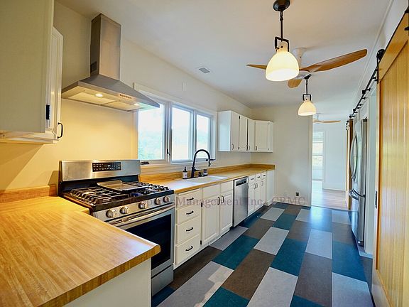 Bright in-door natural lighting with Central AC, Central Heat, an in-unit washer and dryer, a gas range, a dishwasher, ample storage in the garage, a fenced in a veggie garden with irrigation, fruit trees and it is nearby to the trails of Mt. Tam.