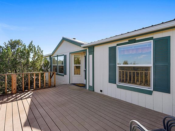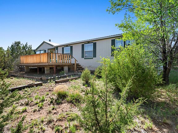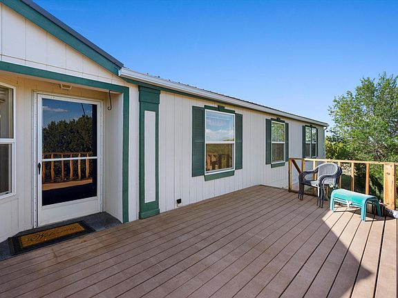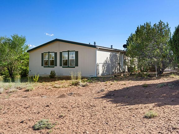 Welcome to your new home in Moriarty! This charming 4-bed, 2-bath manufactured home offers comfort and convenience. Nestled in a peaceful neighborhood, this property boasts spacious living areas including a large family room, perfect for both relaxation and entertaining guests. The kitchen features ample storage space. Outside, the generous 1.55-acre lot offers plenty of space for outdoor activities and gardening. The front porch deck is the perfect place to enjoy your cup of coffee in the morning or star gazing in the cool NM evenings. The detached 2-car garage includes shelving and a workspace area. This property also consists of a 12 x 8 storage shed. Don't miss this opportunity to make this delightful home your own!