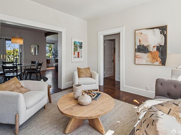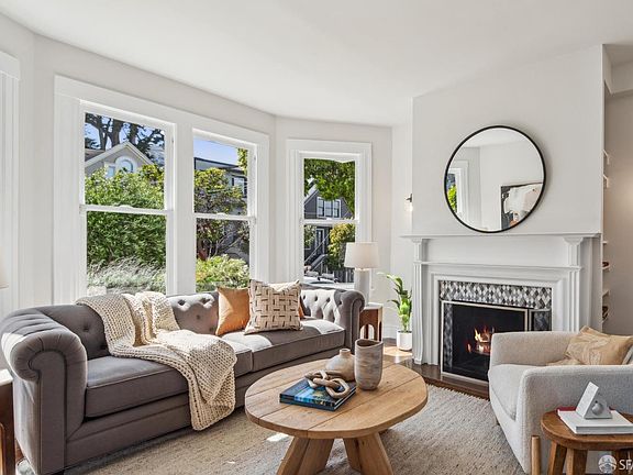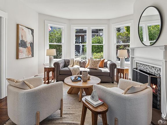 A true Noe Valley gem. 61 Homestead's curb appeal can only be outdone by its ideal floor plan, vaulted ceilings, natural light, fabulous views, and a one of a kind, large mature garden. The main level features a light-filled open remodeled kitchen, a formal living room with a wood burning fireplace and a sophisticated dining area. The upstairs includes three bedrooms, one full bath, and is highlighted by the large primary bedroom with vaulted ceilings and spectacular views. The lower level provides a flexible floor plan with a study open to a light filled family room below, a Tahoe worthy office, and a full bath. The nano doors lead to the spectacular mature garden and patio, offering indoor/outdoor living at its finest.