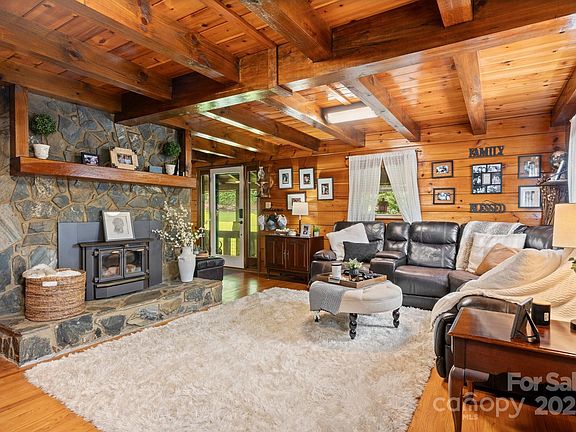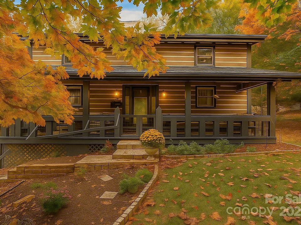 Beautiful 3BR/3BA rustic mountain cabin for sale near Lake James and downtown Marion! This well-kept home features a full front porch, exposed wood beams, hardwood floors, and a floor-to-ceiling stone fireplace. The open kitchen includes custom cabinets and stainless steel appliances. The main-level primary bedroom offers vaulted ceilings, a private deck, and a spa-like bathroom with a soaking tub, dual vanities, and a glass shower. Upstairs provides two additional bedrooms and a full bath—perfect for guests or Airbnb use. Outdoors, enjoy a fully fenced backyard, mature landscaping, and a setting framed by the warm colors of autumn foliage. Short-term rental friendly and move-in ready!