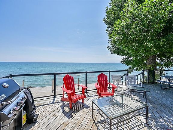 INCREDIBLE Lake Erie waterfront property available to PURCHASE or LONG TERM LEASE OPTION! Welcome to beautiful 61 Horseshoe Bay - spectacular water front property boasting 148ft of valuable beach-front protected by professionally installed break-wall-2020 abutting 3100sf of unobstructed conc. entertainment area enhanced w/nautical heavy rope railing. Located 10 mins SW of Dunnville near 18 hole golf course, boat launch & eco-friendly mouth of Grand River/Port Maitland area -45/55 min commute to Hamilton, QEW. An authentic Lake Erie “Masterpiece" is majestically situated at end of quiet dead-end street perfectly positioned towards southwest enjoying panoramic water views from a plethora of oversized windows. Incs ultra stylish new vertical vinyl sided exterior w/new facia/soffit/eaves in 2025, beautifully renovated, freshly painted redecorated year-round home/cottage(1991) introduces over 1500sf of bright, inviting living area highlighted w/pine tongue & groove vaulted ceilings incs 2 skylights - exuding magical sea-side charm. Ftrs functional EI kitchen sporting ample wood cabinetry, quality appliances, center peninsula island segues to comfortable living room offering multiple patio door WO's to 650sf lake-front deck enhanced w/glass panel railings. Continues to south-wing master enjoying lake facing window & 3pc en-suite, 4pc primary bath + 2 additional bedrooms. Stunning 1500sf all new lower level'22 offers spacious family room, 4th bedroom, 5th bedroom (poss. 2 rooms), laundry room & utility room. Aprx. $60,000 in 2024 BnB income!! Extra - luxury vinyl/carpeted flooring'22, “Smart” automatic shutters'22, camera/security'22, furnace/AC'22, RO water purification'23, cistern, 2 holding tanks, battery back-up sump pump'22, hi-speed internet...!! Diversity Plus - ideal Multi-Generational - or - Income Producing Property - better still - Simply to Live Relaxed at the Lake - in Executive Comfort & Style! AIA