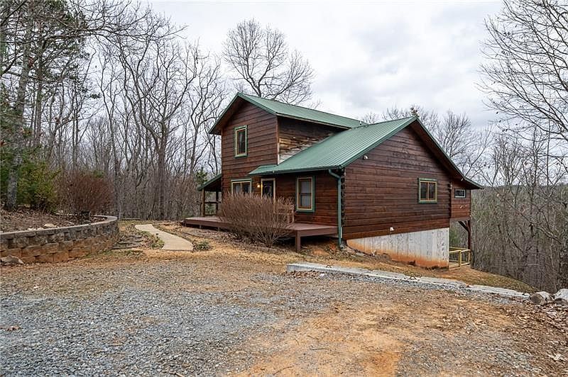 Looking for the perfect mountain getaway? Look no further than this beautiful cabin in Ellijay! With stunning mountain views from the large deck, complete with swinging chairs, this cabin is the perfect place to relax and take in the beauty of the surrounding landscape. Inside, you'll find tons of living space, perfect for gatherings with friends and family. Main level offers a master bedroom and bath, as well as a bonus room for extra guests or a small office. This home has been updated throughout, including a huge finished basement with a bedroom and bath, full kitchenette, and game room. The detailed finishings, such as cedar and walnut trim, hickory kitchen cabinets, granite counters, and true hardwood flooring, make this home feel truly special. Outside, you can enjoy the large covered porch and the many fruit trees, including apple, pear, and fig. Located behind a gated community but is not subject to HOA fees, and is super close to Carter's Lake. There are no rent restrictions, and great rental history. Each floor has a bath, and there is even a small pond on the property. The home sits on 5 acres of land, so there is plenty of room to build a second home, yurt, or cabin for more income-producing opportunities. Don't miss your chance to own this stunning cabin in the mountains!