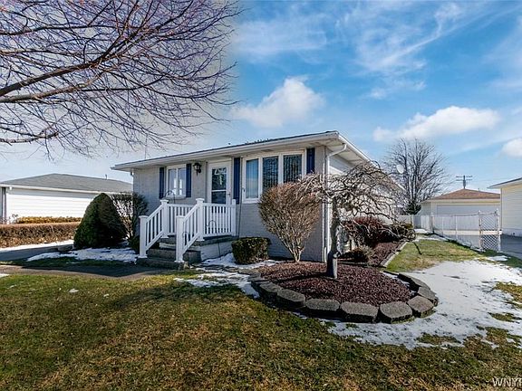 This is the home that you have been waiting for! Updated and adorable 3 bed, 1.5 bath in the Village of Depew and Maryvale schools. The Living Room has great natural light and good layout with gas fireplace focal point. The eat-in Kitchen has a ton of storage and comes with all appliances. All of the bedrooms are spacious with carpeted floors (hardwood underneath) - one is currently used as a TV room/Office with access the rear deck. The updated full bath is ideal with a stand-up shower AND separate soaking tub. A bonus is the huge basement space - tons of possibilities in the partially finished area, a separate laundry/utility area, additional room with workbench and TONS of storage space. All of this plus a convenient half bath, updated mechanics and newer tear off roof! Great greenspace in the fully fenced back yard as well as a deck ready for Spring and Summer parties. Solid house with a detached 2 car garage and close to all conveniences. Definitely a must see home - showings start immediately and offers will be reviewed on 3/8/22 at 1:00.
