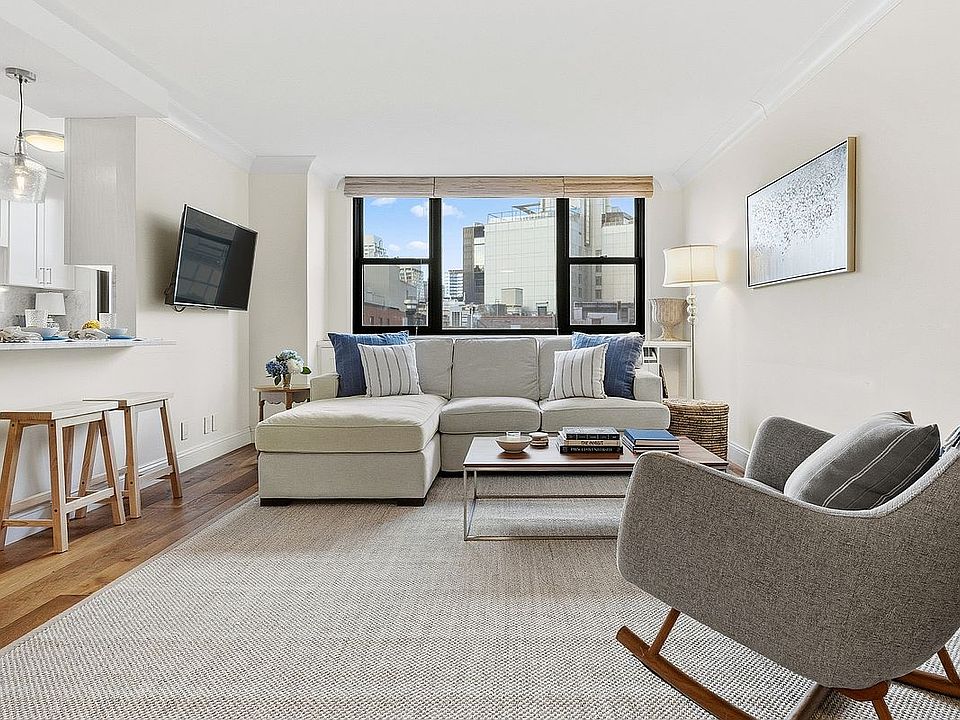 Welcome to one of the most coveted one-bedroom lines at The Cezanne, ideally positioned on iconic cobblestoned Jane Street in the heart of the West Village. This expansive residence offers rare, sweeping northern views that span the Whitney Museum, Empire State Building, Chelsea, and the dramatic Manhattan skyline.