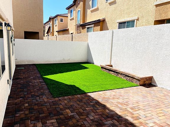 Very well maintained four bedroom home in double gated community located right next to the community pool and jacuzzi for easy access. HOA maintains all yard work. The home features island kitchen with granite counters, walk in pantry and breakfast bar, open first floor with wood-look tile floors and opening to quaint yard with patio and synthetic grass. The upstairs features large bedrooms with walk in closets in the secondary bedroom. The configuration of one bedroom with a second entry into the master leaves a multitude of options for using the room. The house is located across from Cornerstone Park with a walking loop, near Green Valley Ranch Area. Zoned for top-ranked schools. Monthly Charges: $2495 rent. Apply through Tami Cote with ERA Brokers Consolidated-Sterling Property Management