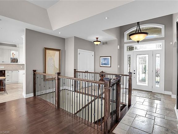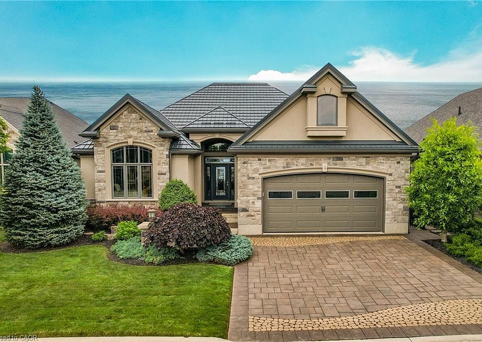 BREATHTAKING WATERFRONT ELEGANCE …. Lakeside Luxury Meets Exquisite Craftsmanship at 4-61 Lake Street in Grimsby. Experience stylish lakeside living w/DIRECT WATERFRONT ACCESS in one of Grimsby’s most sought-after enclaves. LAKE VIEWS FROM EVERY ANGLE! Nestled along the shoreline, this exceptional DETACHED BUNGALOW w/GROUND LEVEL WALK-OUT boasts 2800 sq ft of FINISHED LlVING SPACE and is thoughtfully customized inside & out w/an unmatched commitment to quality & detail. Every square inch of this meticulously maintained property speaks to pride of ownership. From the upgraded brick exterior to the 50-year metal roof, PRO landscaped driveway, walkways, patio + sprinkler systems & private gated ACCESS TO THE BEACH, this home’s curb appeal & functionality are second to none. The DOUBLE GARAGE boasts Palladian windows, man door + upgraded door system - while inside, a 200-amp electrical service supports extensive lighting, B/I speakers & smart functionality throughout. Step inside to a light-filled, elegant interior adorned w/7” hickory hardwood, coffered ceilings, upgraded lighting, plumbing fixtures & custom millwork. The CHEF’S GOURMET KITCHEN offers quartz counters, backsplash, gas range w/electric oven, wine fridge & formal dining area w/coffered ceiling detail. The main floor living area features a gas fireplace flanked by custom cabinetry opening to a STUNNING DECK w/PLEXI GLASS RAILINGS & retractable sunscreen - perfect for enjoying morning coffee or evening sunsets over the lake. Retreat to a serene primary suite w/hardwood floors, coffered ceiling, walk-in closet w/built-ins & 5-pc ensuite w/quartz accents. A second bedroom features vaulted ceilings, Palladian window & double closets. LOWER (GROUND) LEVEL features a FULLY FINISHED W/O BASEMENT boasting a cozy family room w/fireplace, surround sound, B/I shelving, alongside a HOME GYM, office, additional full bath & COVERED PATIO! This home is more than a property - it’s a LIFESTYLE ON THE LAKE! Luxury Certified
