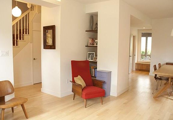 Cambridge line - Architect-designed and renovated, furnished, modern single family on a quiet street, two blocks to the W.F on Beacon Street, and within a 5 minute walk to both Inman or Union squares. The open first floor is graced with 9' high ceilings, light stained oak floors and an Euro-style cook kitchen with dining area and direct access to a lovely bluestone patio and back yard. The 2nd floor has a generous master suite with a designer's mosaic tile bathroom with tub, walk-in closet and a wall of windows over the newly landscaped recreational Lincoln Park. 2nd bedroom has built-in desk and an adjacent mosaic tile bath with tub. The 3rd floor has 2 bedrooms with slanted ceilings and skylights. Bright and airy, this is a cheerful home with driveway for two cars. Avail 9/1.