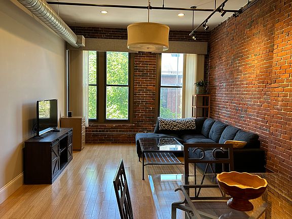 This beautiful loft in the Birke Building in the heart of downtown Lowell is available for rent! A beautiful 2 bedroom, 2 full bath condo has soaring ceilings, exposed brick walls & tall windows bringing in tons of natural light. The kitchen features SS appliances, granite counters & updated cabinets. Featuring an open floor plan between the kitchen, dining area & living room, it is perfect for entertaining. There is an updated bath with a walk-in shower near the entry foyer. The two bedrooms are large & equally sized with generous closet space & plenty of sunlight. There is a 2nd updated full bathroom adjacent to the bedrooms. Located by coffee shops, restaurants, museums, art galleries, live theater & all of the rich culture & history that Lowell is known for, plus easy public transportation & highway access. Central air & in-unit laundry complete this fantastic unit. Parking garage across the street, show proof of residency for a discounted rate!