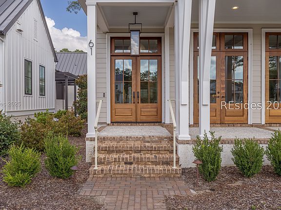 Welcome to 61 Marsh Rabbit Street, a stunning new construction home (2024) in sought-after Palmetto Bluff. This 5-bedroom, 4.5-bath residence blends timeless Lowcountry architecture with thoughtful modern upgrades. Taking in serene park views from the great room and porches, the home showcases detailed millwork with custom built-ins and designer finishes throughout. The primary suite is conveniently located on the main level, while three additional bedrooms on the second level provide ample space for family and guests. The gourmet kitchen opens to bright and airy living spaces, ideal for entertaining or relaxing by the fireplace. Impact-rated windows, whole-house water filtration, and a whole-house generator offer peace of mind, while alley access leads to the oversized 2.5-car garage with EV charging outlet and a 5th bedroom or office with full bath and morning kitchen above. Just a short stroll from the River Road Lodge -- with its pool, fitness center, and community gathering spaces -- this home offers the perfect blend of luxury and lifestyle. Whether as a full-time residence or a Lowcountry retreat, 61 Marsh Rabbit Street delivers Palmetto Bluff living at its finest.