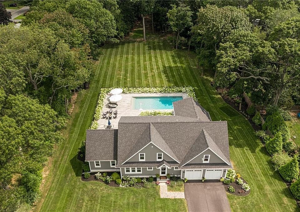 Discover a rare gem in Barrington with this magnificent newer construction home, now featuring a stunning modern 22' by 44' saltwater pool. This extraordinary 3,800 sq. ft. residence boasts 5 bedrooms and 3.5 bathrooms, offering both luxury and comfort. Step inside to a bright, open floor plan where the great room impresses with 18-foot ceilings, a cozy fireplace, custom built-ins, and a shiplap accent wall straight out of a design magazine. The seamless flow continues into the formal dining area and a gorgeous white shaker kitchen complete with soft-close drawers. Designed for the ultimate entertaining experience, the kitchen features stainless steel, chef-grade appliances and a sprawling 10-foot island, providing ample space for gatherings. Extend your entertaining outdoors to the large deck off the kitchen, perfect for al fresco dining. The first floor also includes a versatile bonus room with its own spacious bathroom, ideal as a first-floor primary suite, home office, or in-law suite. Upstairs, you'll find 4 generously sized bedrooms connected by a gracious hallway, including a stunning primary suite that offers a serene retreat. Nestled on nearly 2 acres, the property provides privacy, irrigation, and abundant space. Built with excellence in mind, this home features Hardie plank siding, 2 x 6 construction, Anderson 400 series windows, and central air. With it's Blue Ribbon schools, bike path & short commute to Providence - Barrington is a special place to call home!