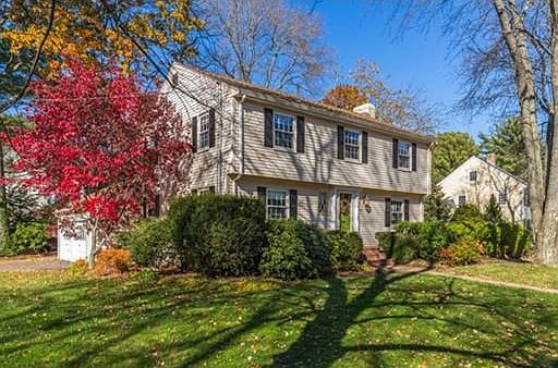Classic center entrance colonial beautifully set on a manicured level corner lot in a sought-after neighborhood. Large updated eat-in kitchen opens to vaulted ceiling great room with fireplace and built-ins. Elegant formal dining room with fireside dining. Attractive hardwood floors throughout. Flexible floor plan offers room for home office or den. Nicely finished lower level playroom with additional fireplace. Sliders lead to large brick patio. Two car garage with direct entry. New central Air. Young roof and furnace. Enjoy an easy walk to town and train. Showings start Friday followed by Open Houses Saturday and Sunday 11 am - 1 pm. Offers to be reviewed on Monday evening at 5:00 pm.