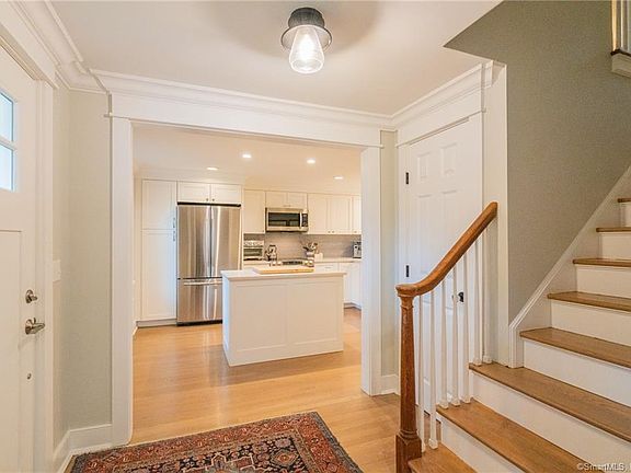 Wonderful opportunity to own a turn-key home within steps of Blue Back Square & The West Hartford Center The moment you pull up to the home you will fall in love with the street and the property's curb appeal. Upon entering, you will notice the elegance and vibe of this modern Colonial. The foyer is extra spacious and includes a coat closet. To the right of the foyer there is the lovely, front-to-back living room, complete with a wood-burning fireplace with an updated mantel. The open concept kitchen is stunning and offers plenty of counter space with its island and peninsula that includes seating. The kitchen features white shaker style cabinetry, quartz counters, a subway tiled back-splash, and stainless appliances. The kitchen is open to the sizeable dining room with plenty of room for a table under the chandelier. Off the kitchen there is a well-sized, fully heated sunroom that is ideal for every season. It is currently used as a playroom but can also be a separate family room or office. The first floor also has a beautifully updated full bath. The second floor offers 3 spacious bedrooms and another lovely, updated full bath. The 3rd floor walk-up attic is a fantastic space for a spare bedroom or an office. The lower-level has potential for additional square footage and the backyard is large and private. Other updates include a new, high efficiency gas boiler, windows, patio, deck, and a one-car attached garage. This home in this location is a must see