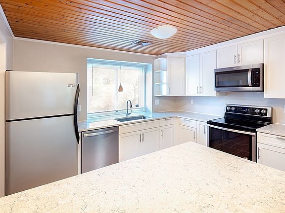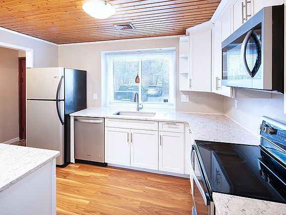 Welcome to this newly renovated 2-bedroom end-unit townhouse. As you enter, you will be captivated by the warm & inviting ambiance of the beautiful wood ceilings. The open floor plan seamlessly connects the living, dining, and kitchen areas, fostering a sense of spaciousness and flow. The kitchen, a focal point of the home, features stainless appliances, stove, and dishwasher just a year old. Combining wood ceilings and modern finishes creates a unique blend of rustic and contemporary elements. The gas heating system provides warmth during colder seasons, while central air ensures comfort on warmer days. Upstairs are two generous-sized bedrooms. The primary has a balcony facing the forest, providing a peaceful and tranquil retreat. A full bath completes the 2nd floor. The lower level has a finished basement, adding valuable living space to the home. The property's desirability extends beyond its borders, as it abuts the Minot Forest and Wareham Land Trust Conservation Area.