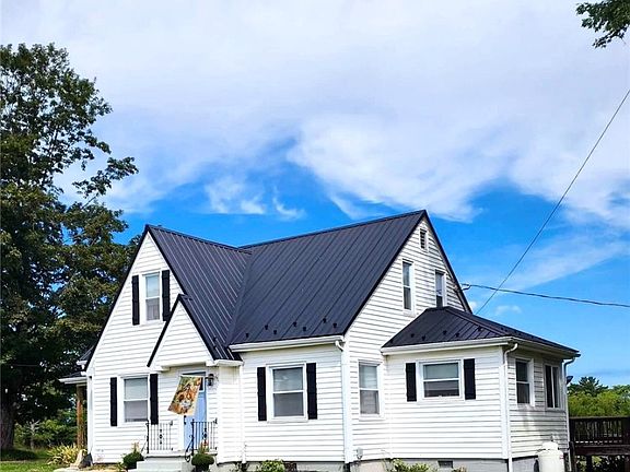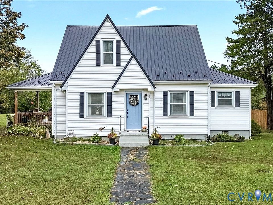 Beautifully updated Cape Cod with a brand new metal roof and heat pump! Step inside to a spacious entryway that opens to a bright living room with side porch access, a large dining room, and a kitchen flowing into the laundry/utility room with a door to the back porch. Enjoy a first floor primary bedroom, full bath, and a versatile additional room with a private side door entrance, perfect for a home office or salon (already hooked up for a shampoo bowl). The unfinished walkout basement is ideal for extra storage and space. Upstairs, find two bedrooms with ample closets and a roomy half bath. This home is close to town & has a large back yard. Schedule your showing today!