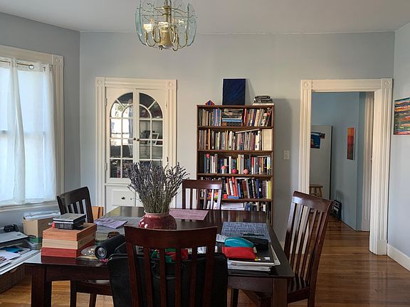 Welcome home to this lovely first floor unit in popular West Medford. Clean and bright, this over-sized apartment features hardwood floors throughout, high ceilings, and fantastic light all around. Updated eat-in kitchen with gas cooking, dishwasher and disposal. Fantastic storage space with plentiful cabinets as well as a classic walk-in pantry. Ceramic tile bathroom. Open living room and dining room with original built-in china hutch. Primary bedroom features a walk-in closet. Second bedroom is perfect as a guest space or dedicated home office. Private laundry in the basement & a small storage area. Tenant receives 1 driveway parking spot, easy on-street parking for additional cars. Gorgeous yard with grassy area and a stunning perennial garden. Tenants pay gas, electric & internet in addition to rent. Fantastic location, approximately 1/4 mile to the MBTA Commuter Rail and West Medford Square, as well as the Minuteman Bike Path and the walking trails along Mystic Lakes. Tenants pay gas, electric and cable/internet in addition to rent. Landlord pays water/sewer. 1 month rent for Broker Fee. Pets negotiable for A++ candidates - 1 pet maximum, no exceptions. Cat or dog only - no caged animals.