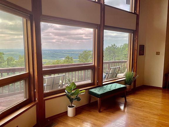 Take a breath of fresh air at this one-of-a-kind custom cedar chalet nestled on 2 acres of mountaintop with stunning views of the Shenandoah River Valley. This private cabin boasts soaring vaulted cedar ceilings over an open plan main level with floor-to-ceiling windows, a wood burning fireplace, and a deck that spans the backside of the house with panoramic views of the Shenandoah River and valley. If desired, comes fully furnished (including towels and linens) with a fully stocked kitchen. Available for short-term or long-term rent, price based on length of stay.