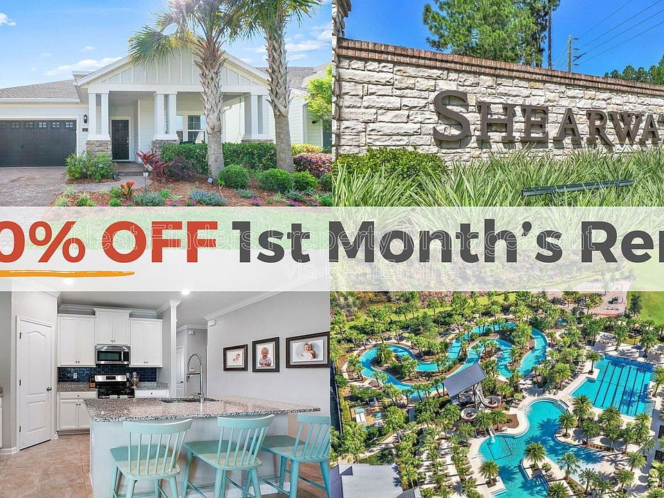 Beautiful 3 bedroom, 2 bathroom home available for rent in the thoughtfully designed community of Shearwater. This home offers over 2,100 square feet of living space. Upon entering, you'll find a versatile den or office space. The main living area boasts a large open-concept floor plan with a well-appointed kitchen featuring granite countertops, white cabinetry, and stainless steel appliances. The dining area is conveniently located just off the kitchen. Neutral tile flooring extends throughout the common areas, adding a touch of elegance. The spacious living room provides ample space for relaxation and entertainment. The primary suite is generously sized, and the primary bathroom includes dual sinks, a soaking tub, and a walk-in shower. An indoor laundry room with a washer and dryer is included for your convenience. Just off the living room, you'll find a screened-in lanai that overlooks the fully fenced backyard, perfect for outdoor enjoyment.