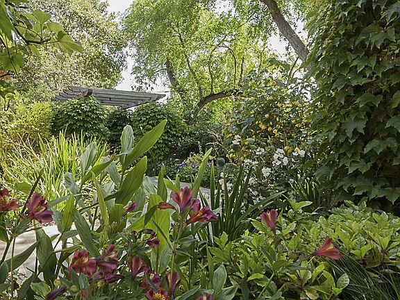 ELEGANT PRIVATE RETREAT: Unique Santa Fe inspired craftsman home nestled in creekside setting. Living room boasts high ceiling & dramatic stone faced fireplace. Culinary kitchen well appointed with granite countertops, ss appliances, custom cabinets & teakwood island. Relax & enjoy outdoor living under the vine covered pergola in the serene park-like yard. Warm wood windows, French doors and many artful details throughout. Excellent Los Altos Schools.