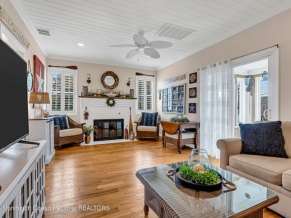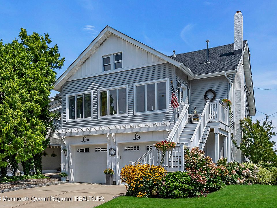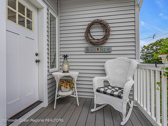Surrounded by lush landscaping, sparkling Stockton Lake views, peeks of the Atlantic and reflecting the essence of a coastal cottage, this seashore treasure awaits. Imagine.... dawn on the main balcony, a cup of your favorite coffee while the sun rises over the ocean, twilight cocktails on the upper balcony as the sun casts a kaleidoscope of colors across the skies, private dinners alfresco on the lower terrace and if the weather turns, then the enclosed front porch is the perfect sanctuary from the storm. Rich hardwood floors and warm wood accents are found throughout and are complemented by soothing shades of summer on the sand. The kitchen calls to your inner chef, and with water views all day long, crisp white cabinetry, a farmhouse sink and beautiful stone you may not want to go out to dinner. Two gracious bedrooms and a full bath finish the main level while the upper level offers two more bedrooms, full bath, loft and a secret office/playroom to hide away in. A two-stop elevator, just off the fully heated 2 car garage, takes the carrying out of your day, and the expansive storage area with air conditioning, is a slice of heaven. Manasquan's famous beaches are just up the road, and after a day in the surf ,the outdoor shower reminds you why you bought a beach house. All this and Manasquan's vibrant, bustling downtown makes this the perfect home to start making your memories at the beach.