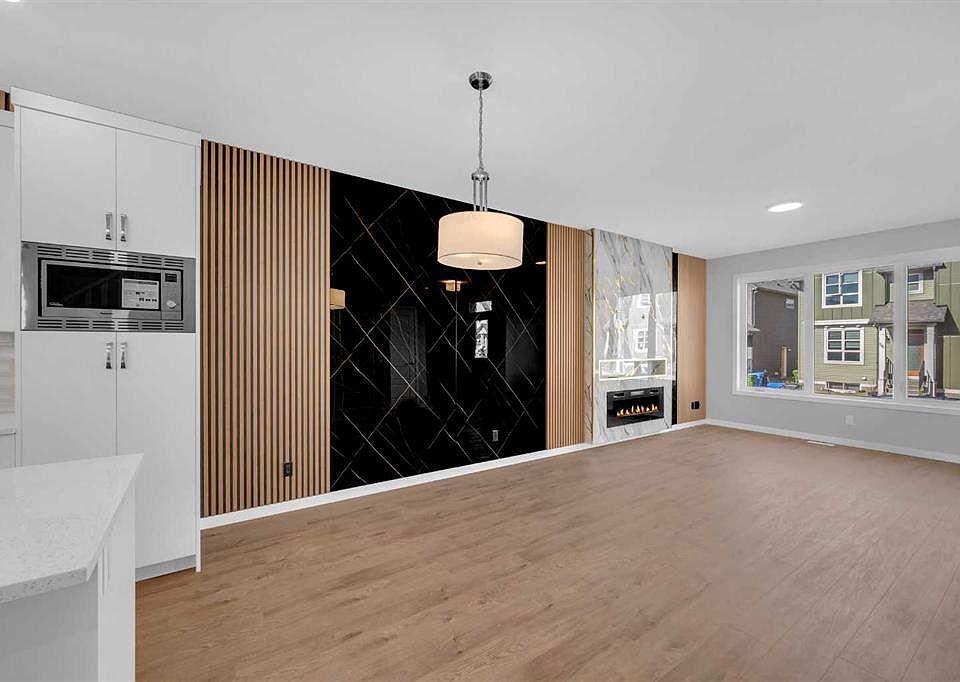 Open-concept layoutDesigner finishesFeature wallsElectric fireplaceChef-inspired kitchenCeiling-height cabinetryStainless steel appliances