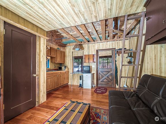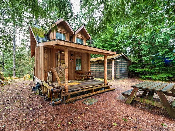 NEW PRICE..Looking for a get away, this is it!!! Beautiful cabin has water, septic, .45 ac lot. Tons of possibilities. The cabin has a loft for sleeping, kitchen area, family room, bathroom w/shower. The additional bldg, outdoor kitchen with a wood stove, sink and lots of prep space with ability to raise 2 sides to add outdoor covered space while enjoying the warm weather. Slate patio firepit hidden behind the kitchen area. From that area you can see the lower level where septic system, water and rv outlets are located for future use. Olympic Trails shares a beach lot for water access and oysters. Property backs up to US24 Forestry Rd into Pacific National Park where you can ride for days, enjoy nature. CASH ONLY. Cannot be financed.
