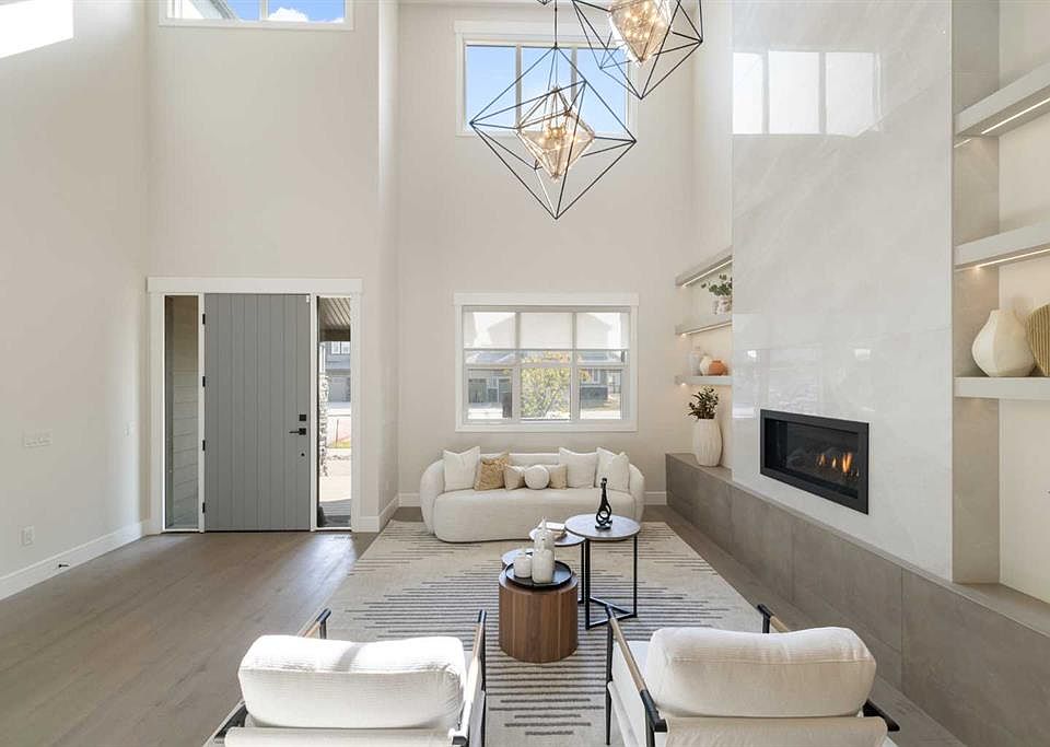 Welcome to Sunset Ridge, where luxury meets lifestyle in this stunning 3,000 sq ft home by Green Cedar Homes. With 4 bedrooms, 4 bathrooms, a walk-out basement, and a triple attached garage, this residence embodies modern design, functional living, and elevated craftsmanship—all set against Cochrane’s signature mountain backdrop. Step into a bright, open main floor designed for both comfort and connection. The chef-inspired kitchen serves as the heart of the home, featuring premium finishes, sleek cabinetry, and a seamless flow into the dining and living areas. A gas fireplace anchors the living room, creating warmth and elegance—the perfect setting for family gatherings or quiet evenings in. A flex room on the main floor provides versatility for a home office, study, or formal sitting area, while a walk-through pantry and mudroom add convenience to everyday living. Upstairs, retreat to a luxurious primary suite with a spa-style ensuite—complete with dual vanities, a freestanding soaking tub, and an oversized shower—alongside a generous walk-in closet. Three additional bedrooms, each with access to full bathrooms, and a spacious bonus room complete the upper level, balancing comfort with style. The undeveloped walk-out basement offers endless potential for a custom entertainment area, gym, or guest suite—ready for your personal touch. Located in Sunset Ridge, one of Cochrane’s most sought-after communities, residents enjoy scenic trails, parks, schools, and breathtaking Rocky Mountain views, just minutes from every convenience. Built with precision and care by Green Cedar Homes, this property captures the essence of modern family living—elegant, spacious, and designed to impress.