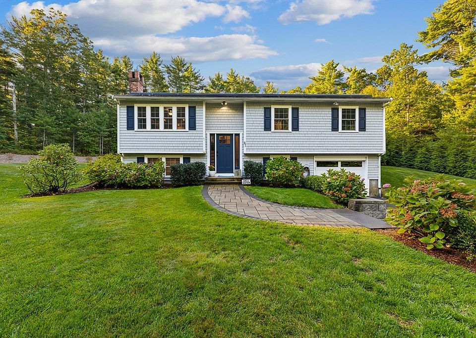 That's not a photoshopped lawn! Manicured landscaping and amazing curb appeal in this 3BR fully renovated raised ranch home with 1 car garage and partially finished basement. Redone from top to bottom. Amazing open concept kitchen and family room space ideal for everyday living. Custom cabinetry, granite counters, SS appliances (incl wine fridge station), tile backsplash, recessed lighting and farmers sink. Full view of the expansive back yard from the oversized kitchen window. Gleaming hardwood floors throughout the main floor. Fireplaced FR with hardwood stairs from the main entry. Updated and tiled bathrooms, incl the primary with custom tiled shower. All BRs have ceiling fans. Lower level has a lg finished game room area, a laundry/storage area and access to the 1 car garage. Parking for 20 cars, so you can have amazing get togethers and utilize the incredible lawn space. Solar panels and Tesla battery to offset your costs. Irrigation system with well. Don't miss out on this home!