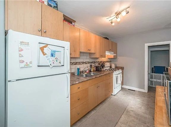 This beautifully renovated two-level, two-bedroom home is full of natural light and charm, located in one of Guelph's most desirable neighbourhoods. Large windows illuminate the spacious main level with gleaming hardwood floors, leading into a bright, contemporary kitchen. The new modern cabinetry, neutral countertops, and brand-new fridge perfectly complement the original hardwood floors.