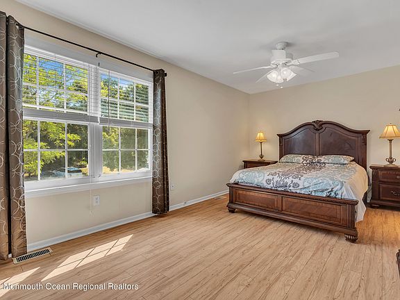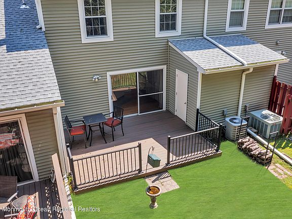 Welcome to the highly desirable Tinton Woods, this 2 bedroom, 1.5 bathroom Townhouse is located near the Suneagles Golf Course and on the border of Tinton Falls. This townhome has an open floor plan with an updated kitchen, a large living room/dining room combination with a wood burning fireplace. The sliding glass door leads you to your own private deck where you can also find your storage shed. The second floor boasts two large bedrooms with ensuite bath. The washer and dryer are located on the second floor conveniently in between the two bedrooms. Throughout the home there is an abundance of closet space. Brand new roof was replaced two months ago. Attached garage with direct access into the home. Plenty of guest parking across the street. This pet friendly community has many amenities including: tennis court, pickleball court, pool, playground and a club house. Close to the shops, dining, schools with close access to the Garden State Parkway and Route 18. Come and see this charming Townhouse, it won't last!