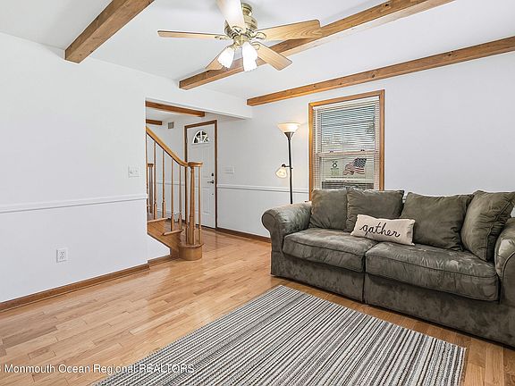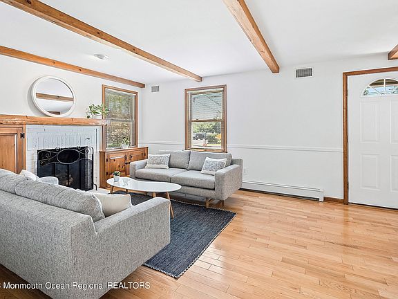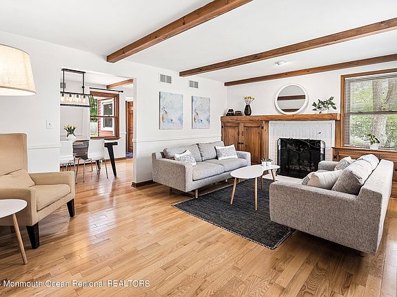 MULTIPLE OFFERS- HIGHEST + BEST BY 4PM TUE 6/13. Charming 3 BR 2 BA Colonial in the heart of Shrewsbury. Enjoy the cozy living room featuring a gas fireplace, w/ custom built-in cabinetry, beamed ceilings, formal dining room with bay window overlooking the serine and well-manicured back yard. Bright Eat in kitchen features sky lite in vaulted ceiling, ceramic flooring, and stainless steel appliances. Versatile 1st floor bonus room can be purposed as a playroom, den, or office. Spacious master bedroom, full bath, and 2 additional bedrooms on second floor. Hardwood floors throughout, full dry basement, new roof. Enjoy the 350 Sq. ft. deck just off the kitchen perfect for summertime barbecues. Walking distance to the grammar school, and minutes to downtown Red Bank and beautiful beaches.