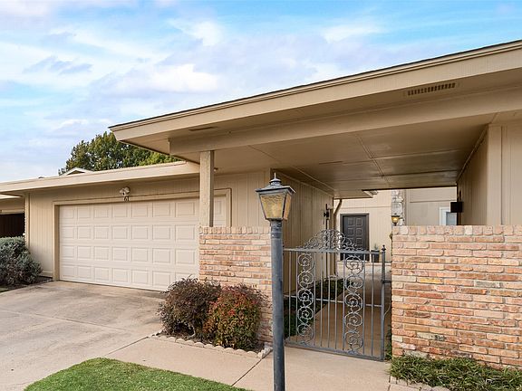 Step inside to an open and airy layout featuring new luxury vinyl plank flooring, LED can lighting, and updated stainless-steel appliances (2023). The kitchen includes granite countertops, ample cabinet space, and a breakfast bar that opens to the living room—ideal for everyday living and entertaining. A separate dining room provides additional space for hosting. Both bedrooms are generously sized with spacious bathrooms, offering privacy and convenience. Large windows fill the home with natural light, and the backyard offers a peaceful view with mature trees and glimpses of the nearby golf course. Enjoy a private front courtyard and a rear patio perfect for relaxing outdoors. While the condo has shared walls, each residence includes its own 2-car garage, adding convenience and privacy not always found in condo living. Don’t miss this opportunity to enjoy a beautifully updated home in a prime Benbrook location near Ridglea Country Club!