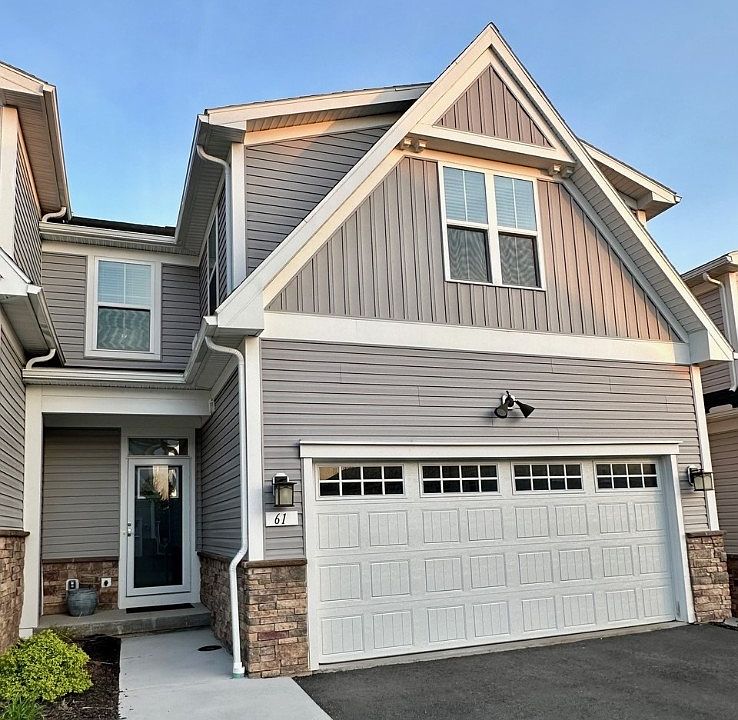 Experience luxury living at its finest in this meticulously crafted Canandaigua townhome, where every upgrade ensures unparalleled comfort and convenience. With nine-foot ceilings & an open floor plan on the main level, natural light floods the space, seamlessly blending indoor & outdoor living. The primary bedroom conveniently located on the main level offers a spa-like retreat with an upgraded bath featuring a fully tiled walk-in shower & dual shower heads. Ample storage solutions include an oversized walk-in closet & separate linen closet. Primary suite features a tray ceiling and large windows, bathing the space in natural light. The professionally finished lower level with full bath is perfect for entertaining or creating a private retreat. Step outside to the covered porch and enjoy worry-free outdoor living with maintenance-free decking. Don't miss the chance to own the coveted Caroline model, with its EnergyStar 3.0 rating gets you low costs & care free living including low $230 per month HOA fee which covers all exterior maintenance,snow removal and lawn care. Come visit this beautiful home.