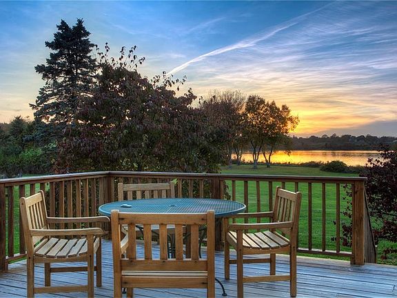 Delightful, spacious home just south of Historic Tiverton Four Corners directly overlooking Nonquit Pond. This 4 + bedroom home features 3 full recently remodeled bathrooms and delightful chefs kitchen, complete with concrete counters and separate pantry. Natural light pours into the south/west facing kitchen, family and breakfast rooms showcasing the brilliant views and stunning sunsets over the water. Upstairs, En suite master bedroom set apart with working fireplace, deck and walkin closet also takes in the impressive water views. 2 other spacious guest rooms share hall bath, "bonus" 3rd guest room is actually 3 rooms in one, perfect flexibility for a shared bedroom, kids playroom, homework nook, art studio or home office. This very special home is set on 1.67 pastoral acres on one of the most pleasant streets in Tiverton, an easy walk or bike ride to the favorite shops, restaurants, antique stores and art galleries that share Tiverton's popular 4 corners historic district. Escape the city and embrace coastal living at its finest. 30 miles to Providence, 63 miles to Boston and close to Tiverton and Little Compton beaches.