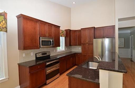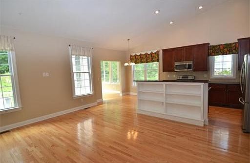- Kit Dscrp: Flooring - Hardwood, Countertops - Stone/Granite/Solid, Breakfast Bar / Nook, Recessed Lighting, Stainless Steel Appliances, Open Floor Plan, Crown Molding