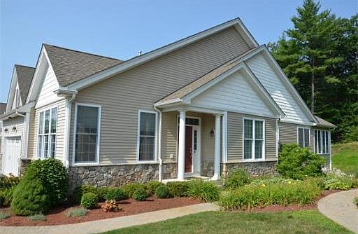 Springtime and trees are blooming!! Located at the Regency,a popular 55+ community, in the heart of Bolton. Bright sunlight streams into this end unit. A lovely sun room and deck overlook a private back yard facing the woods. Home features an open floor plan with high ceilings, hardwood floors, neutral carpet and neutral tile. High end kitchen showcases upgraded cherry cabinetry, beautiful granite counters,stainless steel appliances and a double oven. Entertain family and guests in the separate gracious dining room including accent moldings and wainscoting . Large master suite boasts 12' tray ceilings, a large walk in closet and stunning master bath. A huge basement with plenty of room to finish or use for storage. Convenient first floor laundry with washer and dryer included. Community has an inviting clubhouse with a large fire placed meeting room where social gatherings are held. Enjoy a large gazebo deck overlooking a pond with fountain. Shopping nearby.