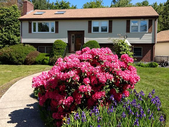 This is a very spacious split entry in a beautiful neighborhood on the West Side of Woburn. It has 4 bedrooms and an office space that could be a 5th bedroom. All windows on the lower level are newer Thermopane windows. There are 2 family rooms in the lower level, one with a fireplace one with a kitchenette. The second family room can be accessed from it's own door at the front of the house near the 2 car garage. The main floor has all new Anderson Windows. The grounds are very nicely landscaped with mostly perennials and flowering shrubs and trees. The gazebo in the back yard has grape vines covering it which makes for a quiet shady spot to relax or read in the summer. it has more privacy than most with no homes to the street side and shrubbery in the back.