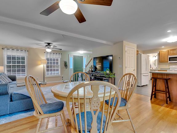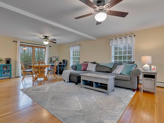 Situated on a private 2.78-acre lot near downtown Berwick and the ME/NH line, this 1,728 sq ft (with an additional648 sq ft finished basement space) Colonial offers an open-concept first floor, natural-light interiors, and versatile spaces. The main level features a spacious living/dining area with a slider to the back deck that receives afternoon sun, a large kitchen with peninsula seating, and a first-floor flex room ideal for office, playroom, or den. A half bath with laundry completes the main level. Upstairs offers three bedrooms and two full baths, including a front-to-back primary with ample storage.