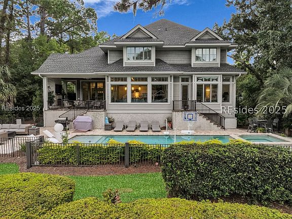 Just steps from the beach and a short stroll to South Beach Marina Village, this newer and elegant ocean-oriented residence offers the perfect blend of coastal charm, luxury living, and strong income potential. Designed with entertaining and comfort in mind, the open floor plan features a grand great room with boxed beamed ceiling, expansive chefs kitchen with dining area, popular butlers pantry/scullery (with additional dishwasher and refrigerator), and seamless access to the spacious covered porch with outdoor fireplace ideal for year-round gatherings. With 5 ensuite bedrooms including one dedicated bunk room and one family/bunk room two room suite with additional living area, this home easily accommodates large families and guests, making it a highly desirable vacation retreat and rental property. An upstairs morning kitchen invites your guests to enjoy coffee or a midnight snack. The 5 full baths, 1 half bath and convenient pool bath complement a thoughtfully designed layout. Outside, privacy is key with a heated pool and spa that invites relaxation against the backdrop of sweeping eastern exposure views over Sprunt Pond. Refined architectural details and extensive trim throughout, a 3-car garage, and timeless finishes complete this coastal haven. Whether enjoyed as a private second home or a high-performing luxury rental, this property delivers exceptional proximity to Sea Pines premier amenities, the beach, and the vibrant South Beach Marina Village.