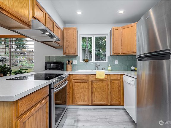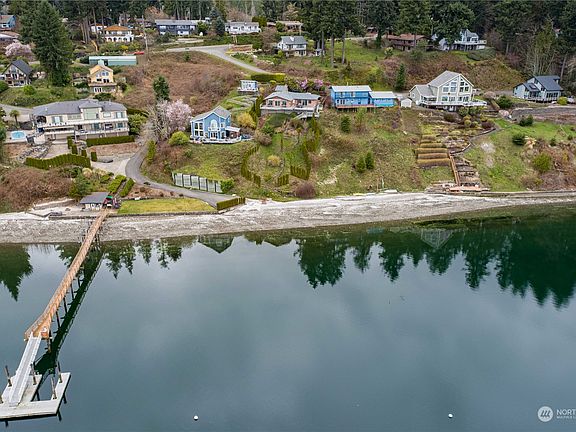 Dig shellfish, boat, and kayak on spectacular Totten Inlet in Bay East community with access to private beach and high-water dock. Your professionally painted 2 bed, 2 bath home includes a bonus room and detached two car garage. First floor boasts new LVP flooring, updated bath and bedroom, custom Bali shades, and new pellet stove. Upstairs, enjoy a spacious bedroom with private balcony, bathroom, and den/craft room. Outside, take in the natural landscape (hostas, lilacs, 4 colors of rhododendron!, and more), or relax on decks in front or back. You’ll find a large fenced area and storage shed in your back yard. Garage main floor, with workbench, is insulated and finished; the insulated garage room upstairs awaits your personal touches.