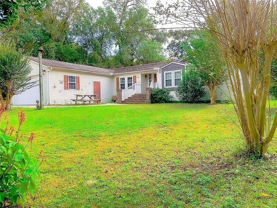 This landscaped 3 bedroom 2 1/2 bath home has a lot to offer. Split floor plan with 2 bedrooms sharing a jack and jill bathroom. Sunroom with a split A.C. unit. The kitchen has tiled countertops, an island, and a breakfast bar. The home features a formal dining room, office, foyer, and laundry room. Large living room with a gas log fireplace. Backyard has a 20 x 48 workshop with a covered carport. A pergola sitting area that overlooks the concrete fountain. Community boat ramp/ dock and there's so much more.