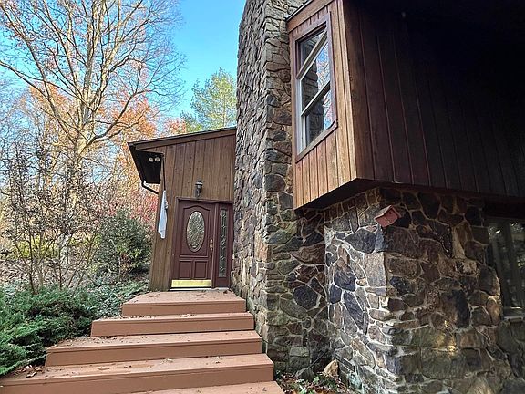If you have been searching for a larger parcel with total privacy, this may be "The One". Tucked back on a 1/4-mile driveway, this home sits on 32 acres with not another home in sight! Custom built with 6" walls and extra insulation. Filled with rustic charm and features for either relaxing or entertaining. The open floorplan has a living room with vaulted ceilings, a stone fireplace with a gas log, and clerestory windows. It is open to the kitchen, divided only by a large Corian Breakfast Bar. There are custom Amish built Cherry cabinets and a newer Stainless-Steel Refrigerator. On the upper level there are also three bedrooms and a bath. Both the kitchen and Primary Bedroom open to a covered porch. On the lower level there is a game room with a home gym and a built-in bar. There is also a cozy family room with a second gas fireplace, laundry and bath. Outdoors, in addition to the covered porch there is a multi-level deck with a hot tub. On the back acreage there is an observation deck and a shuffleboard court. The Elec panel has been replaced; the roof and skylights were replaced 5-6 years ago. The septic was refurbished approximately 4 years ago. The hot water heater is only a year old, and the refrigerator is only 2-3 years old. There is a 50 x 40 pole barn with a concrete floor and electric service, an attached carport and a detached carport for boat or equipment storage. Fiber optic internet is available.