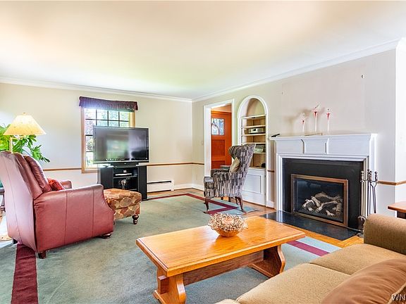 Charming Amish-built ranch with upgrades galore and upgraded construction can be found in this beautiful home located in the Clarence Central School District! This home features tons of built-ins, gorgeous hardwood floors, and a spacious layout. Enjoy the parklike backyard with no rear neighbors from your stamped concrete patio. The updated galley kitchen, completed 2 years ago, has new appliances, tile backsplash and quartz counters. The spacious full bathroom and has vaulted ceilings. Other updates include a newer boiler (2019), roof (2012), upgraded windows, house generator, and blown-in insulation. Don't miss out on this exceptional home!