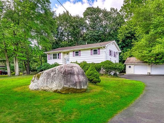 This immaculately maintained Hi-Ranch in Airmont is what you ve been waiting for! With over 2,000 sqft of living space this 4/5 Bdrms 2 bath home boasts a formal dining room with hardwood floors throughout, hi-hat ceilings, & updated windows. Open eat-in kitchen with wooden cabinets and two-sinks. Cozy three season room overlooking the peaceful park-like backyard with almost an acre of land. 3 well sized bedrooms upstairs with large fill bath. Downstairs features a family room with new ceramic tiles, additional bedroom & full bath. Huge laundry room with a side entrance. Many amenities include a new boiler, washer/dryer, central vacuum, one-car attached, and two-detached garages. Low taxes! An opportunity not to be missed. Come check it out, for good deals don't last!