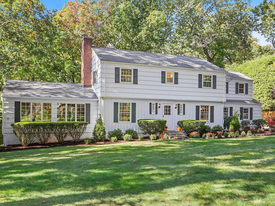 Welcome Home, to this classic New England Colonial. Surrounded by mature trees and located in an established neighborhood, close to town providing convenience and privacy. The heart of this home starts in the spacious sundrenched family room that is ideal for relaxing or entertaining, complete with a wood burning stove, vaulted ceiling, and large windows. The main floor has all the space for today's living - Formal dining room, spacious eat-in kitchen with sliders leading out to a large inviting deck and gracious living room with wood burning fireplace. The upper level features a spacious primary suite with closets galore, sitting area and en-suite bath, three other bedrooms and a hallway bath.