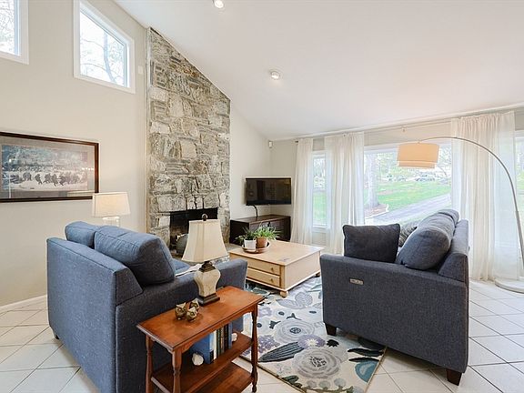 Tucked at the end of a cul-de-sac beside 50+ acres of conserved woods, this expanded split-level offers both charm and convenience—just minutes to major routes and the MBTA. The open-concept main level features cathedral ceilings, ceramic tile, and a slider to a screened porch, perfect for morning coffee or evening relaxation. The kitchen boasts granite counters, custom cabinets, modern appliances, and generous workspace, ideal for the home chef. The primary suite includes a recently remodeled private bath, while three additional bedrooms offer space for all. Central A/C keeps things cool. The finished lower level includes a large den with fireplace, full bath, laundry, and walk-out to a private patio for entertaining. All the bathrooms have recently been expertly remodeled! A detached 2-car garage provides excellent storage. Enjoy the warmth, flexibility, and peaceful setting of this well-cared-for home. A rare find—schedule your visit today!