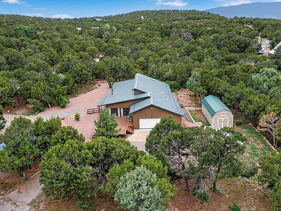 Mountain retreat on 2 wooded acres: 3-bedroom + bonus room. Community water, detached heated workshop and RV parking. Fully fenced. Enjoy the peace and privacy of gated living with the convenience of community water and easy I-40 access, just outside Albuquerque. This charming mountain property includes a large heated detached workshop, perfect for hobbyists, mechanics, or creatives -- plus an additional oversized storage shed for all your gear. Bring your RV! There's plenty of room for parking and toys, with space to spread out and breathe.Inside, you'll find a warm, inviting floor plan with flexible space for work or play, and all appliances convey, making this home truly move-in ready.