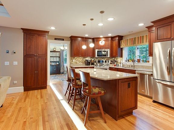 Wow what a house ! Builder's own custom built contemporary cape with an open floor plan offering a renovated kitchen inc cherry custom cabinets, quartz counters, stainless steel appliances, open to family room with FP, cathedral ceilings, accented by French doors and 2nd floor balcony , HDWD floors on the 1st floor, beautiful woodworking details , 1st floor master suite with skylight , double closets and private bath . 2nd floor offers 3 additional bedrooms and guest bath . Finished lower level includes a game room and additional Family rm with wood stove . Oversized mud room leads to large 2 car garage with 2nd level which can be finished or used for storage . Exterior features are equally impressive to include this tranquil setting of 2+ acres , with young composite decking, hot tub & various garden areas framed by wooded yard and stone walls ... Plus NEW heating system , exterior paint (2yrs) so much in this home