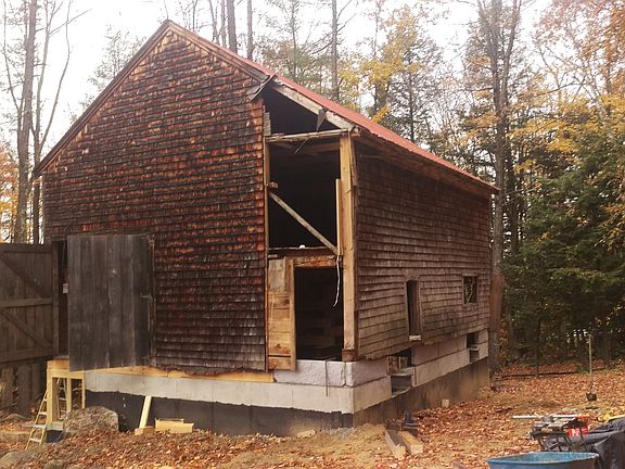 This antique homestead in the Quaker neighborhood has all kinds of potential. The barn has been moved onto a brand new foundation set for two-car basement below. The home and ell are still in original condition, and though intact, will require significant renovation. Alternatively, tear down the house and build your dream home in this beautiful, quiet North Sandwich neighborhood. The house sits at the top of a rolling, sloping, south facing 4 acre field with lovely sugar maples, apple trees, and lots of hardy perennials, including an asparagus patch. There is about 1 acre of mixed growth hard and soft woods around the perimeter. The property is close to the covered bridge, popular swimming holes and miles of hiking trails, and is on a quiet dirt road with little regular traffic.