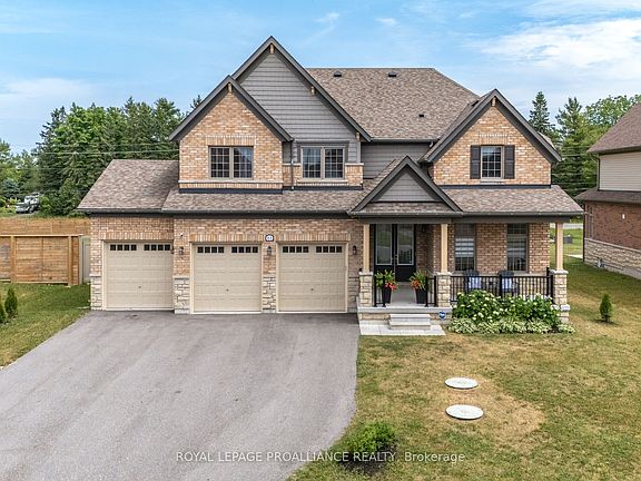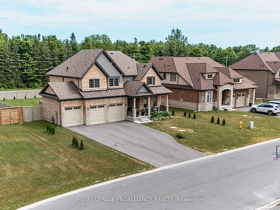 The space your family craves in the enviable location you need. Truly the best of both worlds, balancing work and lifestyle in this turnkey,expansive 4 bed 2.5 bath home. Placed on an oversized, fully fenced lot in a neighbourhood full of large upscale homes, this home is located commuting distance to Durham region, with a dedicated home office for remote days, and is at the doorstep of the peaceful lifestyle only Prince Edward County can offer. Bespoke exterior finishes and covered porch for cool afternoons, sets the tone for a warm and elegant home, ready to welcome any family. 9 ceilings create spaciousness across the main floor opening to the stunning, light-filled atrium living room with remote blinds, elegantly anchored by a cosy gas fireplace. Stylish clean-white kitchen with granite counters and tile backsplash connects to the dedicated dining room through the butlers pantry. Beautifully laid out for elegant dinner parties and big family gatherings. Neatly tucked away home office and 2pc bath are ideal for remote work with Bell Fibe internet service, or create an additional guest space or cosy den. Upstairsfind3 generous sized bedrooms, a full bath and neatly placed laundry room, plus the primary suite that's been on your wish list. 14 x 14 bedroom with ample walk-in closet and second hanging closet leads into the large 4pc ensuite bath with glass and tile shower and the idyllic soaker tub you've been dreaming of. Supersize 3 bay garage, with two convenient doors into the house, is ideal for storing the boats and boards you need to make the most of this area. Oversized backyard is fully surrounded by high-end vinyl fencing and ready and waiting for the pool your kids have been asking for. Ample indoor storage or kids play space in the 6 high basement. The best of both worlds in a comfortable elegant home your family will love. We know you'll all Feel at Home in Carrying Place.